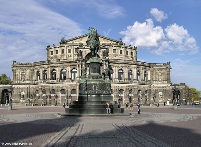 1838 begann Gottfried Semper dann mit dem Bau des „Ersten Königlichen Hoftheaters“. Der Rundbau in den Formen der italienischen Frührenaissance wurde als eines der schönsten europäischen Theater berühmt. Gottfried Semper und Richard Wagner mussten 1849 durch ihre Beteiligung an den Maiaufständen fliehen und durften viele Jahre lang sächsischen Boden nicht mehr betreten. (Semper schuf in dieser Zeit im Ausland z. B. das Wiener Burgtheater.)