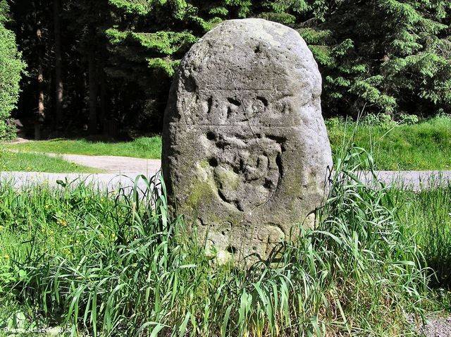 Der „Große Dreiherrenstein” - der Mittelpunkt am Rennsteig des Thüringer Waldes - 810 m. Dieser bestimmt eigentlich nur die Grenze dreier Herren, so geben sich doch hier vier Länder ein Stelldichein: das Haus Sachsen-Weimar-Eisenach, Schwarzburg-Sondershausen, Meiningen und Preußen. Der Stein zeigt auf seinen grau zermürbten Seifen nach Nordwesten das zerstörte Wappen der einstigen Grafschaft Henneberg, darunter seit 1815 das „KP” des Königreiches Preußen und oben 1596. Nach Nordosten sieht man die 2 gekreuzten Gabeln, das alte Grenzzeichen der Schwarzburger, darüber 1596 und unter dem Wappen „FSS". Auf der Seite nach Südosten den sächsischen Rautenkranz des Herzogtums Meiningen. Vom großen Dreiherrenstein sickern die Wässerchen in die Schorte, In die Schobse, über den Ochsenbach in die Wohlrose und in die böse „wilde Schleuse”. Hier kreuzen sich die Straßen nach Neustadt, nach Unterneubrunn und Eisfeld, nach Allzunah und Schleusingen, nach Ilmenau und Gehren. Die Steinsetzung erfolgte am 16.August 1596.